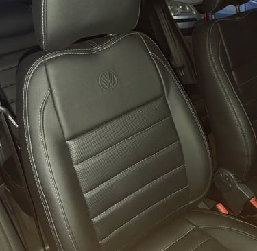 Capotas personalizadas, volantes, marcha, portas, painéis, teto, piso, tapete, bancadas em couro ou sintético.