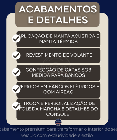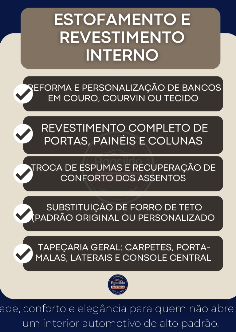 Restauração completa de forros de teto e piso. Devolva beleza e higiene ao interior do seu veículo.